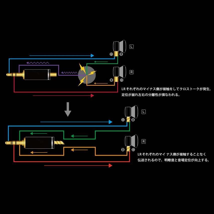 ■ オーディオ信号の劣化を最小限に抑える編込み構成